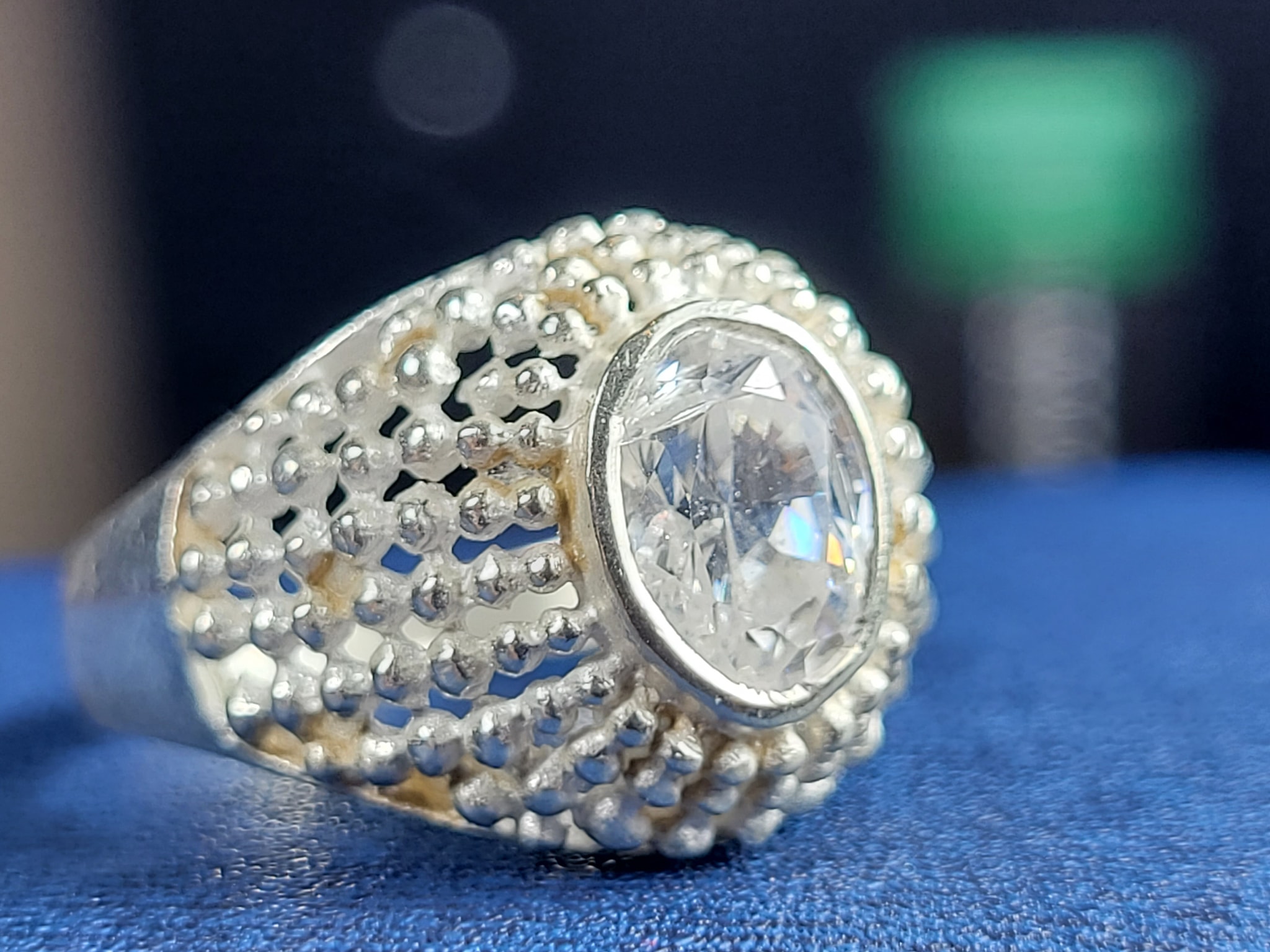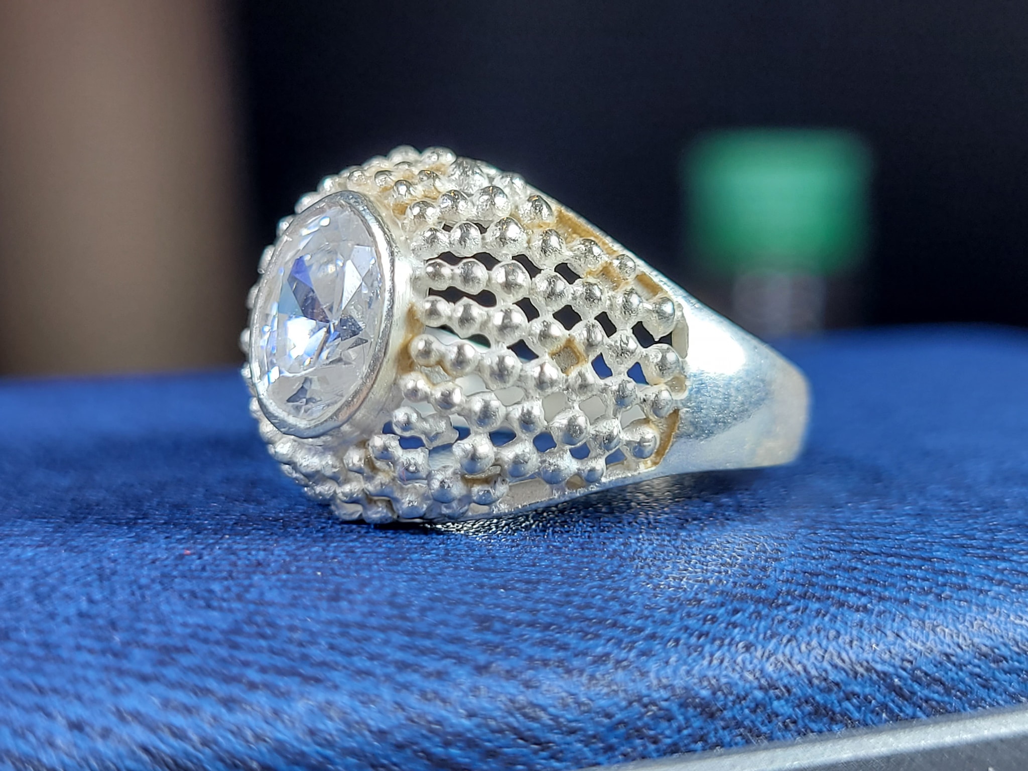 แหวนเพชรจักรพรรดิ์ทรงฉลุเพชรเม็ดใหญ่สวยแชมป์เปี้ยนเนื้อเงินแท้รุ่นเก่าทันสมัยหลวงพ่อตัวเรือน size 58 ต่อเปอร์เซ็นต์เงินคือ 925 หายากไม่ค่อยพบเจอนิมนต์บูชา 13,500 บาทครับสำหรับวงนี้